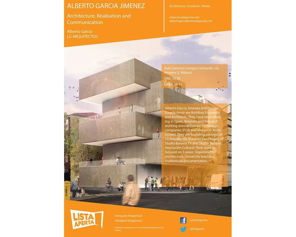 Alberto García invitado a dar una conferencia en la Escuela de Arquitectura de Milán, dentro del ciclo de conferencias Lista Aperta.